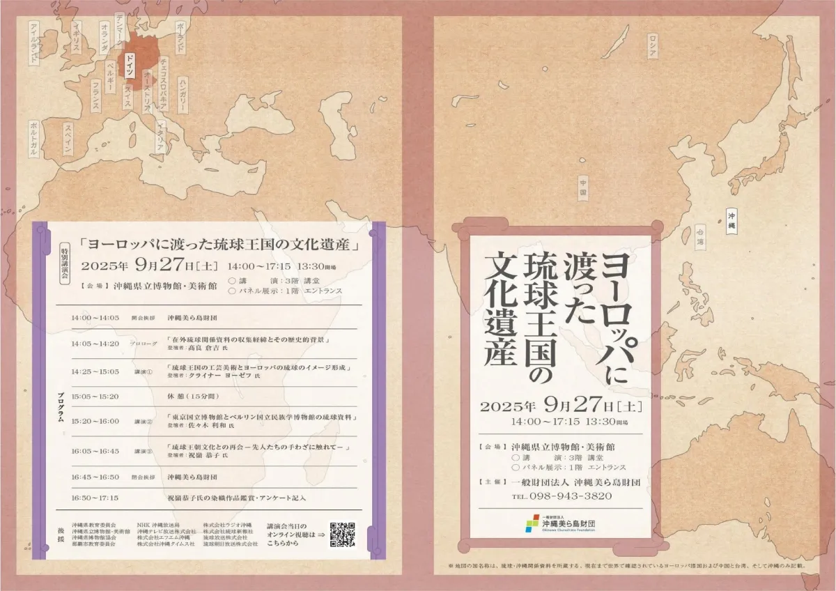 2025年9月27日(土)、沖縄県立博物館・美術館において、特別講演会「ヨーロッパに渡った琉球王国の文化遺産」が開催されます。本講演会は、琉球文化に関する貴重な知見を提供し、参加者に豊かな文化的背景を伝えることを目的としており、皆さんのご参加をお待ちしています。